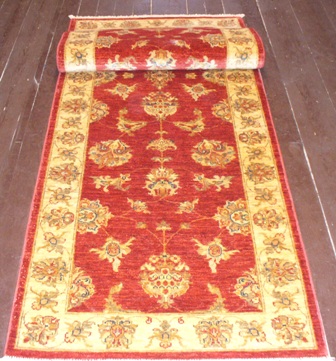 Ein rotgrundiger Ziegler Läufer mit heller Bordüre in den Maßen von ca. 0,80 m x 3,00 m